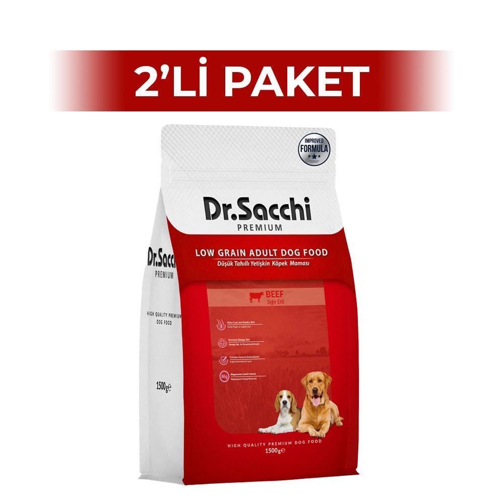Dr.Sacchi Premium Düşük Tahıllı Sığır Etli Köpek Maması 1,5 kg 2 AdetDr. Sacchi