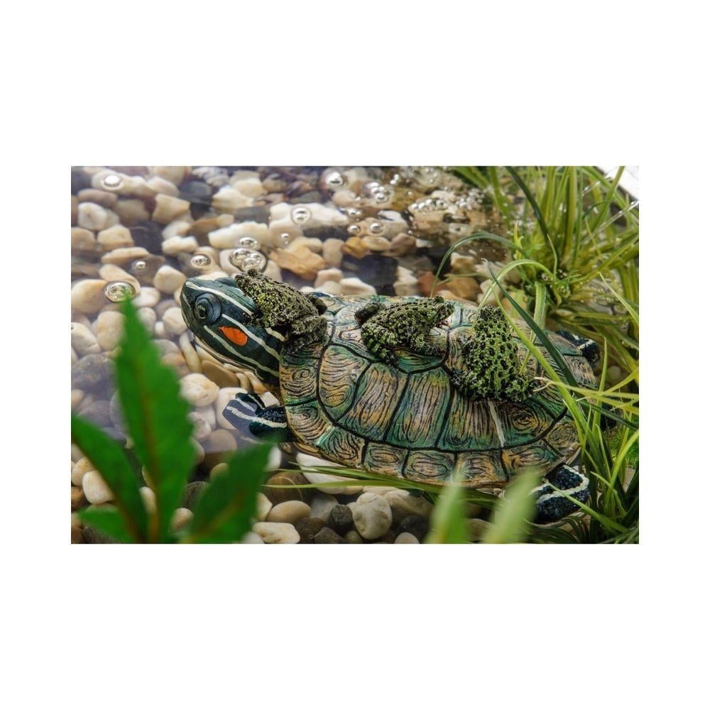 Exo Terra Kaplumbağa Şeklinde Kaplumbağa Adası, su kaplumbağası, kurbağa gibi yarı sulu ortamda yaşayan sürüngenler için, 16,6 x 12,4 x 3,3 cm ebatlarında, mıknatıslı yüzen adadır. Rahat çıkılabilen rampa şeklindedir. Terrariumum köşesine yerleştirilerek, dıştan her iki yüzeye mıknatısla sabitlenerek kullanılır. Yüksekliği mıknatıs sayesinde isteğe göre ayarlanabilir.