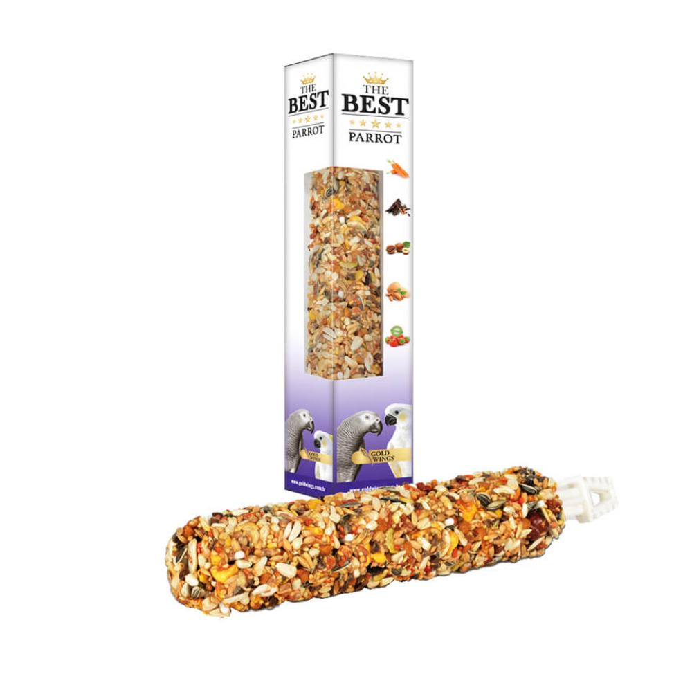 Gold Wings The Best Jumbo Papağan Krakeri, evcil kafes kuşlarının tam ve eksiksiz beslenebilmesi için taze ve en üst kalitedeki yemlerin doğru formülasyon ile beraber özenle hazırlanması sonucu elde edilen özel seri The Best. Her evcil hayvanın özel olduğu gibi ihtiyaçlarının da özel olduğu bilinciyle hareket ediyoruz. Evcil kafes kuşları için gerçek bir beslenme deneyimi sunmak ve sağlıklı bir yaşama katkıda bulunmak en önemli misyonumuz. Bu misyonun en önemli adımı her cinsin kendi başına beslenme alışkanlıkları olduğu ve bu beslenme alışkanlıklarına oranla dostlarımıza en seçkin ve taze tohumlardan elde edilen damak zevklerine uygun yemleri sunmak olduğuna inanıyoruz. Ürünlerimizi özel ambalajlama tekniği ile paketliyor son tüketim tarihine kadar taze kalmasını sağlıyoruz.
