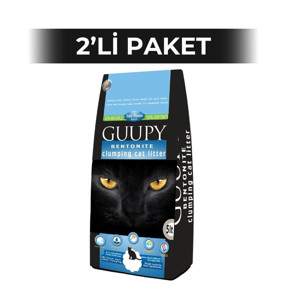 Guupy Bentonit Topaklanan Bebek Pudrası Kokulu Kedi Kumu 5 lt 2 Adet