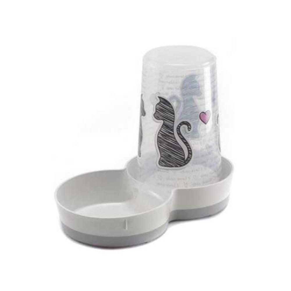 Köpek ve kediler için, şeffaf mama depolama haznesi ile gün boyunca mamanın temizlik ve tazeliğini koruyan, ayrıca su kabı olarak da kullanılabilen, özellikle çalışan pet sahipleri için ideal, pratik kullanımlı, temizliği kolay, hijyenik mama kabı.