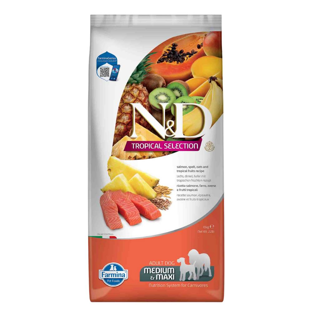 Yetişkin, orta ve büyük ırk köpekler için formüle edilmiş, somonlu, kılçıksız buğday, yulaf ve tropik meyveli tam mamadır.