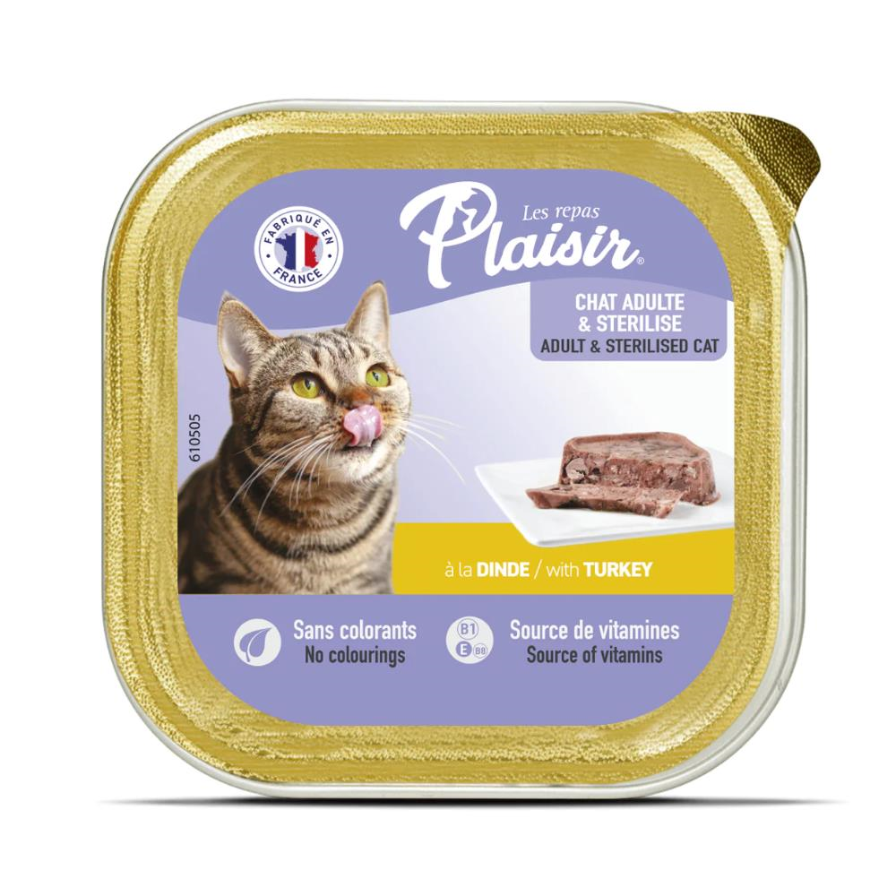 Plaisir Hindi Etli Pate Kedi Konservesi, kedinizin kolaylıkla yiyeceği yapıdadır ve yaş mama 1 yaş ve üzeri kedilerin tüketimine uygundur. Kuru kedi mamasına göre lezzeti daha yüksek olan kedi konserveleri çeşitli içeriklerde ve her kediye uygun olanları vardır. Plaisir kedi konservesi de kedilerinizin oldukça seveceği türden bir konserve çeşididir.