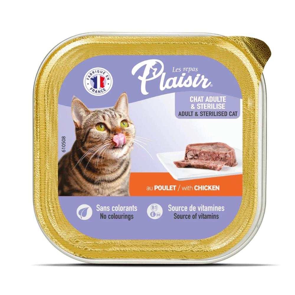 Plaisir Tavuklu Pate Kedi Konservesi, kedinizin kolaylıkla yiyeceği yapıdadır ve yaş mama 1 yaş ve üzeri yetişkin kedilerin tüketimine uygundur. Yetişkin kedilerin beslenme ihtiyaçlarına uygun olan yaş mama, D3 ve B1 vitamini içerir. Kuru kedi mamasına göre lezzeti daha yüksek olan kedi konserveleri çeşitli içeriklerde ve her kediye uygun olanları vardır. Plaisir kedi konservesi de kedilerinizin oldukça seveceği türden bir konserve çeşididir.