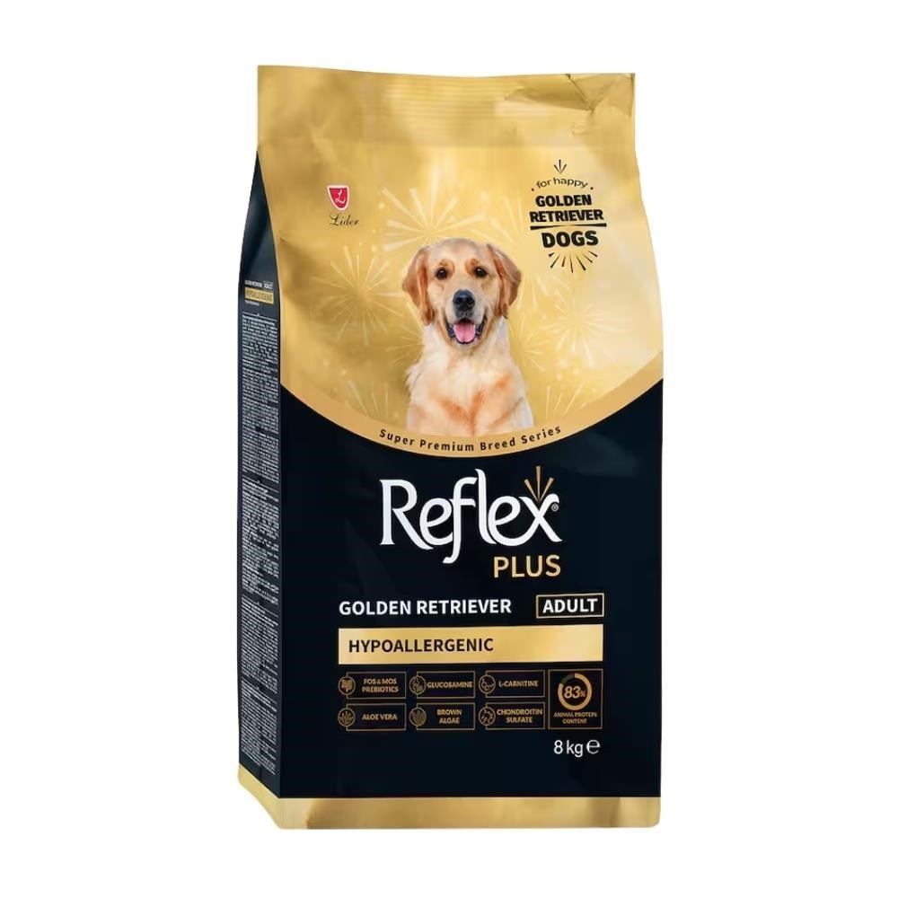 Reflex Plus Hipoalerjenik Golden Retriever Yetişkin Köpek Maması, 10 aylıktan büyük Golden Retriever ırkı köpeklerin besin ihtiyaçlarına özel olarak formüle edilmiş süper premium tam ve dengeli kuru mamadır. Irka özel içerik yapısı sayesinde sağlıklı kas gelişimini, ideal kilo kontrolünü ve parlak tüy yapısını destekler. Hipoalerjenik protein kaynakları ile hassas sindirime sahip köpekler için uygun bir beslenme sunar.