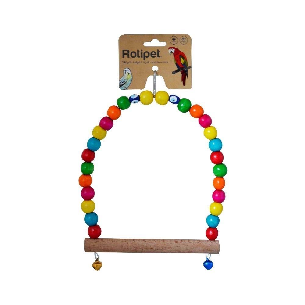 Minik dostlarınızın severek kullandığı aynı zamanda onların sağlıklı gelişmesi ve yaşamını sürdürmesi için üretilmiştir. İpe dizilmiş renkli boncukların birleşiminde ahşap ve zil bulunan cıvıl cıvıl görünümlü kuş salıncağıdır. Uçmadıkları tüm süreler boyunca bir yere tutunarak ayakta vakit geçirirler. Bu sebeple bu salıncak minik dostunuzun hayatında büyük bir yer kaplar. Kaliteli ve ahşaptan olmasından dolayı herhangi bir gagalama, hasar veya çarpmaya karşı son derece dayanıklı yapıya sahiptir. Aynı zamanda hayvan sağlığına tamamen zararsız hammaddeden üretilmiştir. Askı yerinden itibaren uzunluğu 15 cm'dir. 8,5 mm. çapında ahşap boncuk ve ahşap çubuk kullanılmıştır.