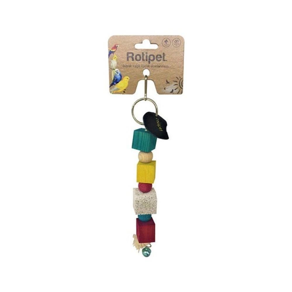İpin üzerine dizilmiş renkli ahşaplar ve uç kısmında bulunan zil sayesinde kuşunuzun dikkatini hemen çekecektir. Oyuncakta bulunan minik taşı gagaladığında gaga yapısını düzene sokar. Muhabbet kuşları, kanaryalar ve diğer egzotik kuş türleri için kafes içerisinde kullanılan kaliteli ahşap, kaliteli renkli boncuklar ve iplerden üretilmiştir. Kuşunuzun sağlığı düşünülerek yüksek kalite de malzemeler kullanılmıştır. Kuş oyuncaklarında kullanılan boncuklar, ipler, metal parçalar salınım yapmayacak toksik madde içermeyen malzemelerdir.