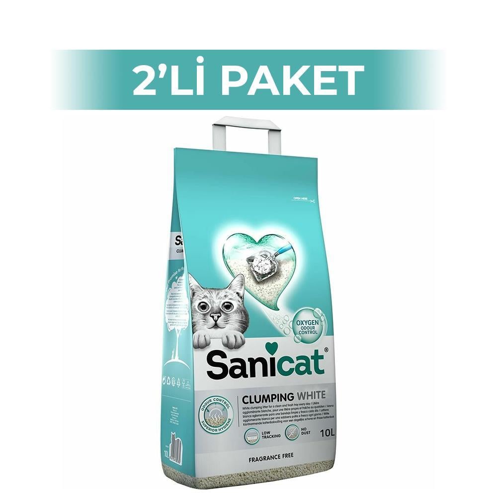 Sanicat Clumping White Cotton Oksijen Kontrol Topaklanan Kedi Kumu 10 lt 2 Adet