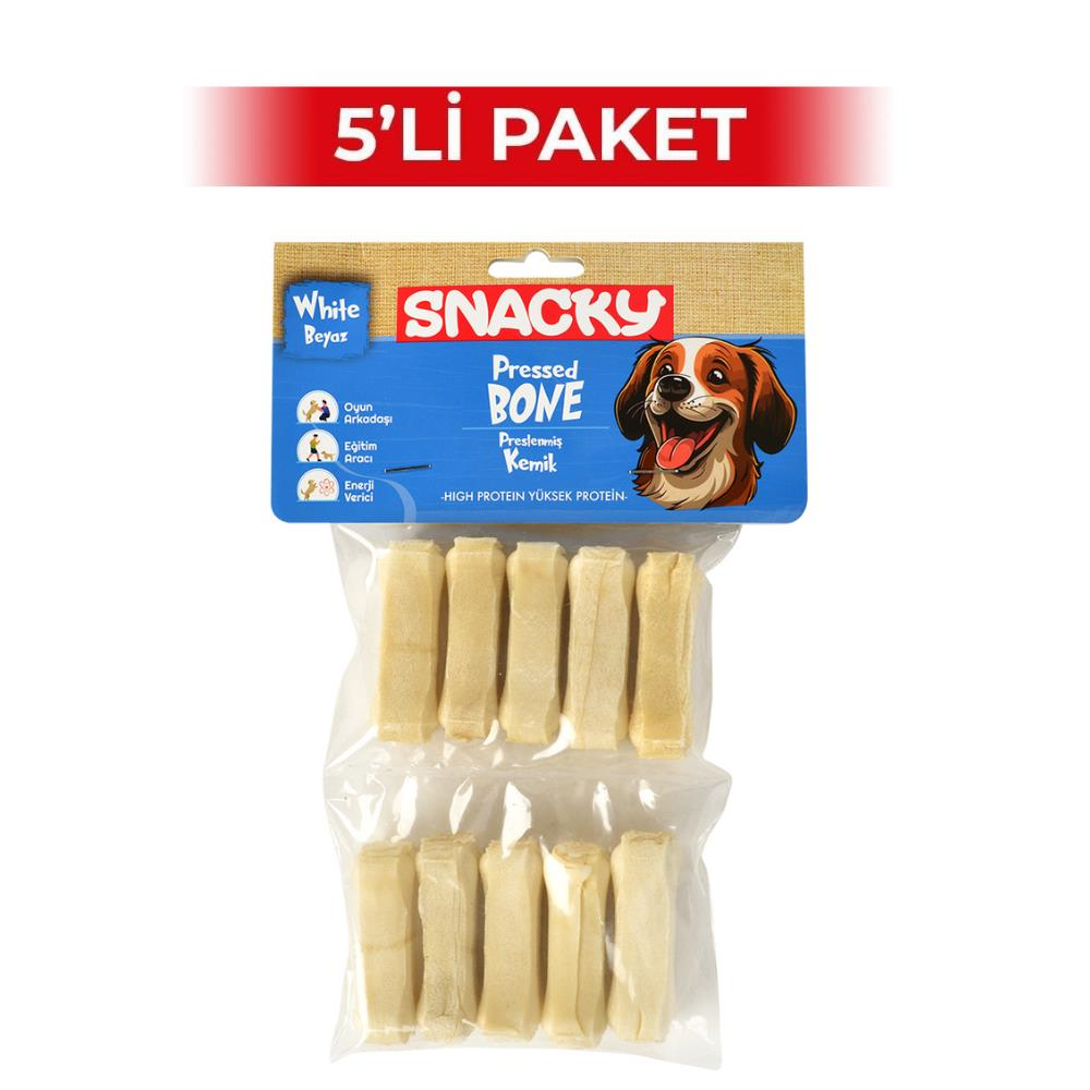 Snacky çiğneme kemikleri köpeklerin damak zevkine göre üretilmiş ödül kemikleridir. Köpeklerde içgüdüsel olarak bulunan kemirme ihtiyacını giderirken dişlerde tartar birikimi ve plak oluşumunu engeller. Çene yapısını güçlendirir ve dostunuzun eğlenceli vakit geçirmesini sağlar.