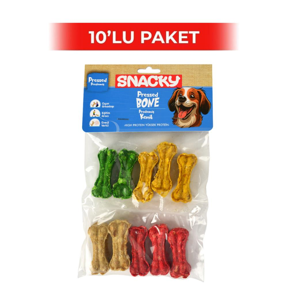 Snacky çiğneme kemikleri köpeklerin damak zevkine göre üretilmiş ödül kemikleridir. Köpeklerde içgüdüsel olarak bulunan kemirme ihtiyacını giderirken dişlerde tartar birikimi ve plak oluşumunu engeller. Çene yapısını güçlendirir ve dostunuzun eğlenceli vakit geçirmesini sağlar.